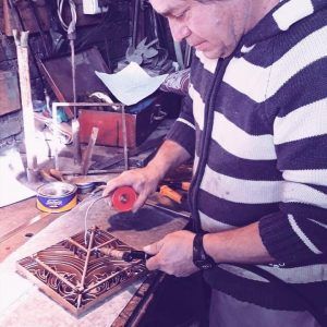 El dibujo resultante se traduce en una trepa de bronce, que actúa como separador de los colores en el momento de la fabricación.